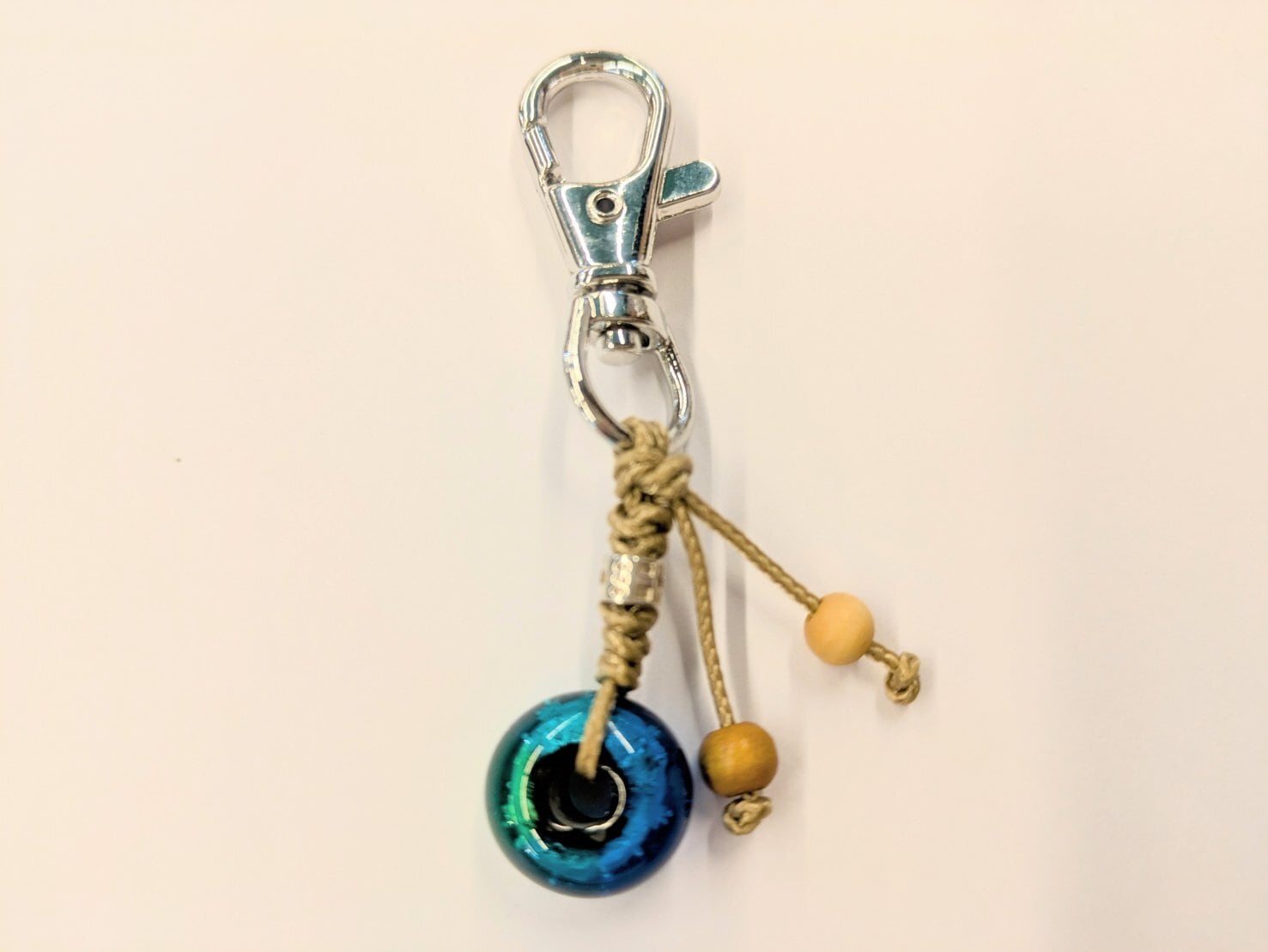 ユイオリジナルのホタルガラス、川平ブルーのキーホルダーです。 バッグやキーにつけて、いつでも心は石垣島の海と共に… ホタルガラスは職人さんが手作業にて1点1点作っています。 色の入り方も同じものはなく、すべて一点物になります。 お届けする商品も写真の色味とは異なる場合がございます。 ガラスの中に蓄光が入っているので、光を集めると暗いところでしばらく光ります。 全長約7㎝ほど。 紐の色は、ベージュとグレーになります。
